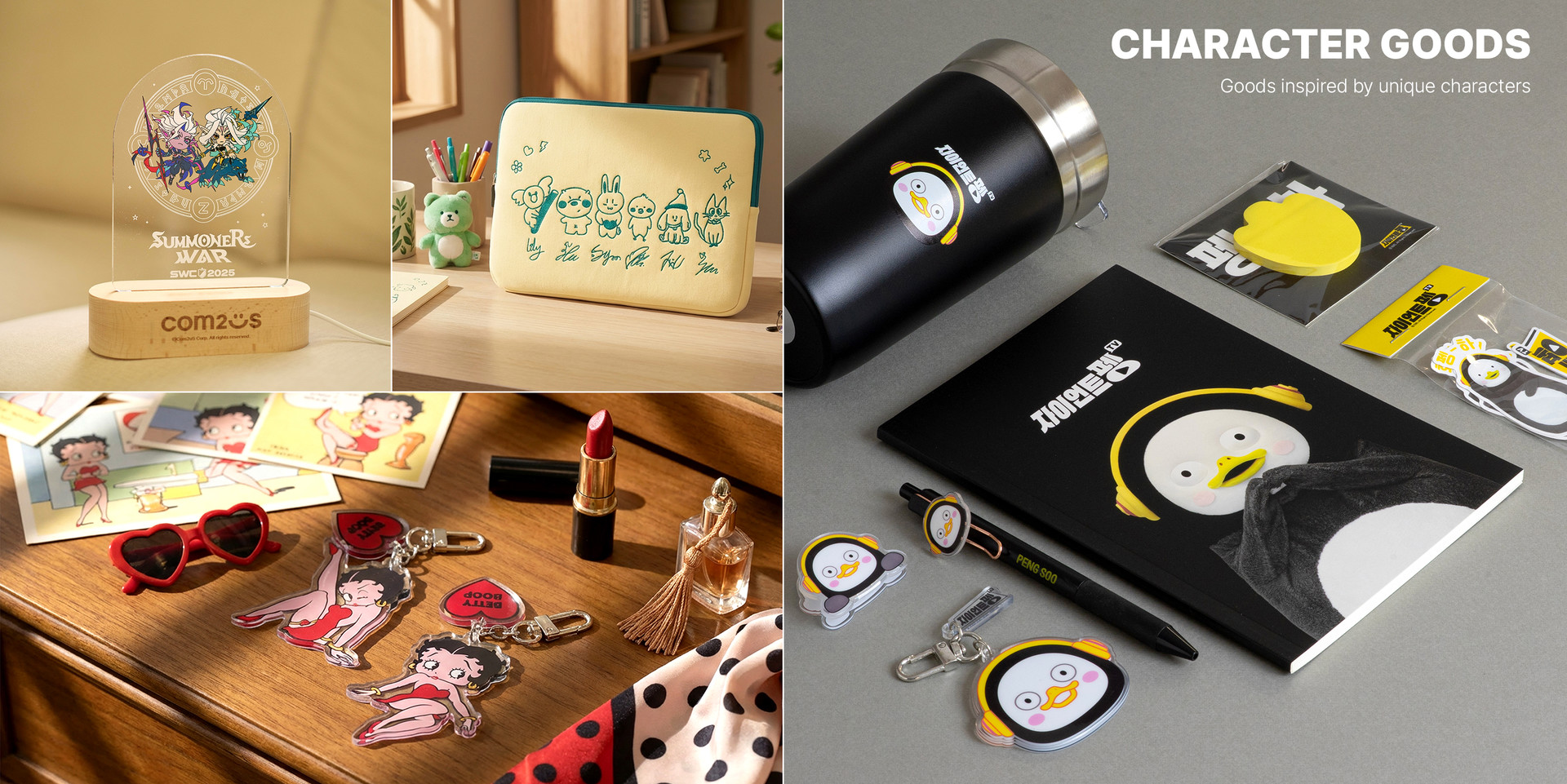 티셔츠, 스티커, 아크릴 무드등, 아크릴 키링 등등 아이디어제품